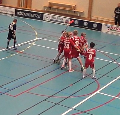 I tionde minuten så tappade vi bollen bakom eget mål, deras forward tog bollen, hittade in i slottet till en framlöpande center som drog upp bollen i högra krysset till 3-2. Tungt men inte slut. Med en och en halv minut kvar så tog vi timeout och lade upp en taktik. Vi fick tryck men inga avslut och med tretton sekunder kvar fick vi ett frislag i vänstra hörnet i Nykvarns zon. Plockade ut Isak och skickade in Adam in i slottet. Felix fejkade intramp, passade Olle J som hittade in till Adam i slottet som slog in kvitteringen till 3-3 med elva sekunder kvar av matchen.