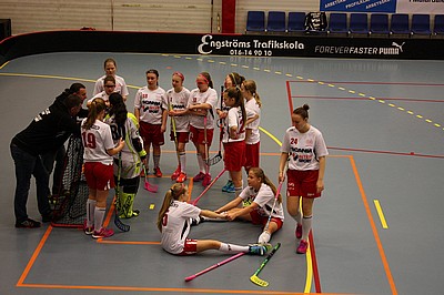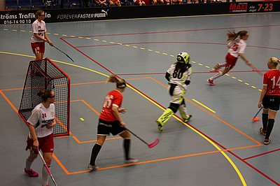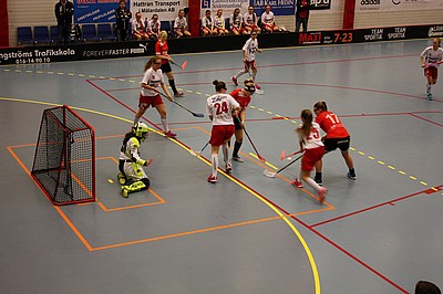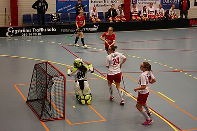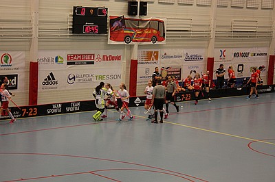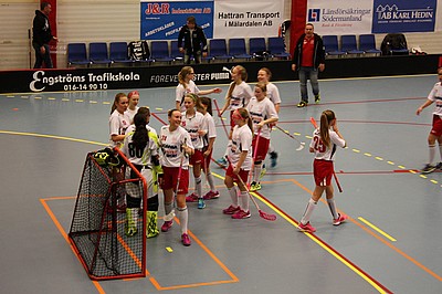 Tredje perioden går igång och vi spelar en härlig innebandy, försvaret jobbar frenetiskt och Jennifer gör några snygga räddningar. Vår virvelvind Ella får ett friläge och då sitter 5-0 bakom Torshällas målis.