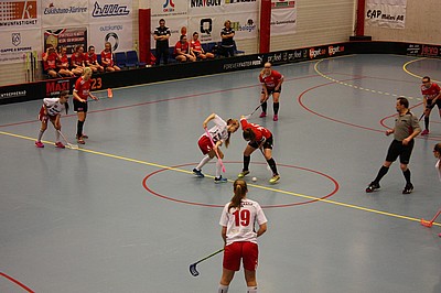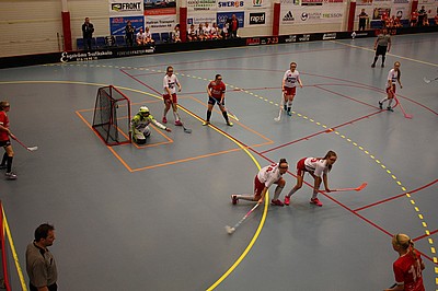 Andra perioden går igång och Agnes provkör, redan i första bytet får hon ett härligt läge men bollen smiter tätt utanför. Nu kan vi gå på 4 backar igen. En bit in i perioden gör Julia illa foten så det blir lite omplåstring men envis som bara hon kan vara är hon ute på plan igen. Elin sätter 3-0 och Tilda sprätter ur ingen vinkel alls in 4-0 till oss. Periodvila.