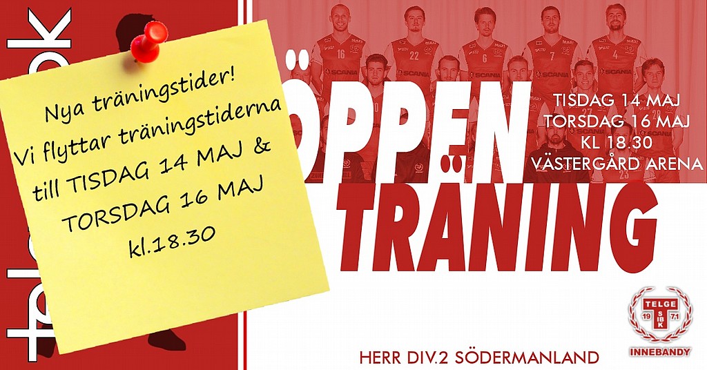 Herrlaget byter träningstider och flyttar tidigare aviserade öppna träningar till nästa vecka. Det innebär att det inte är någon träning torsdag 9 maj.