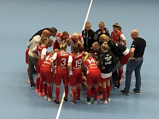 I inledningen av tredje spelar vi fram oss till en bra målchans men utan sätta pricken över i:et. I stället dröjer det till nionde minuten och ett till synes ofarligt frislagsläge vid sargen där Clara Ekenström vaket ser en lucka vid första stolpen och drar ett distinkt skott för ledningsmål till 1-2. Klockan står på 8.21. Vi får inte behålla ledningen speciellt länge utan IKSU maler på och stressar fram misstag som till slut leder fram till deras kvittering efter 12.35. Ett par minuter senare är det dags för fjärde stolpträffen när Felicia Forsmark ser sitt avslut ta den vägen. Med endast 2.38 kvar av matchen sätter IKSU ledningsmålet till 3-2, återigen efter att ha stressat fram misstag hos oss. Vi tar omedelbart Time-Out och tar fram tavlan. Det blir rejäl effekt och 35 sekunder senare har vi spelat bort IKSU hela vägen från bakom vårt eget mål och Therese Gustafsson kan sätta avslutet i taket för 3-3. Matchen går till förlängning.