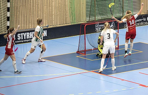 passning från Åsa Tjusberg hittar in lågt i bortre gaveln. Med 3-4 och nästan