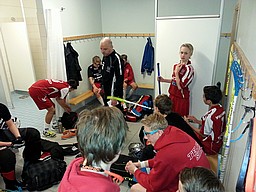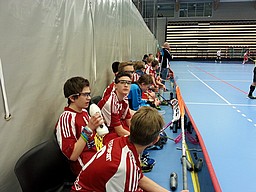 Vi har aldrig tidigare spelat mot Fullersta IBK. Hur skulle detta gå? Ja vi ledare behövde inte vänta så länge för att se vart åt det lutade. Våra grabbar är fullt fokuserade trots arla morgonstund och gör en värmning som gör oss ledare lugna, samtidigt ser vi motståndarna springa runt både här och där i korridorerna. Redan här har vi vunnit matchen känns det som. Inför andra perioden leder vi med 5-0 och vi kontrollerar matchen som slutar med 9-2.