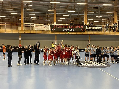 Den viktiga kvitteringen mot FBC Kalmarsund i slutspelet i Linköping Floorball Games. Äkta glädje!