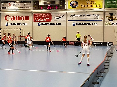 I andra perioden får Trosas duktiga Jennifer Ekman på ett skott utifrån som oturligt letar sig in bakom Ebba och det är 3-0 till Trosa. Direkt efter reducerar vi men Trosa ger sig inte, dom får in 4-1 och vi reducerar igen. 4-2, timeout för Telge och vi går ner på 2 femmor.